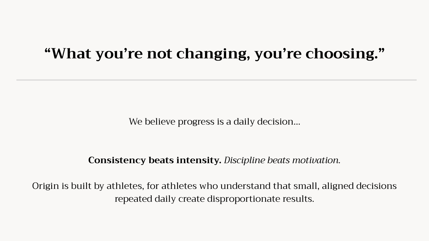 Every choice comes with an opportunity cost. Is the progress you’re gonna make worth the price you’re paying today? To be honest, you may not necessarily need to buy ORIGIN. But because we truly understand opportunity cost, you can trust that we genuinely relate to your needs—we integrate them into our R&D, food development, packaging, and marketing. That understanding alone sets us apart from all other ready-to-eat brands. It’s the intention behind everything we do, ensuring you get the most optimized, high-performing product that both the market and ORIGIN have to offer. After all, ORIGIN is built by athletes, for athletes. Let’s redesign the ready-to-eat meal scene together.